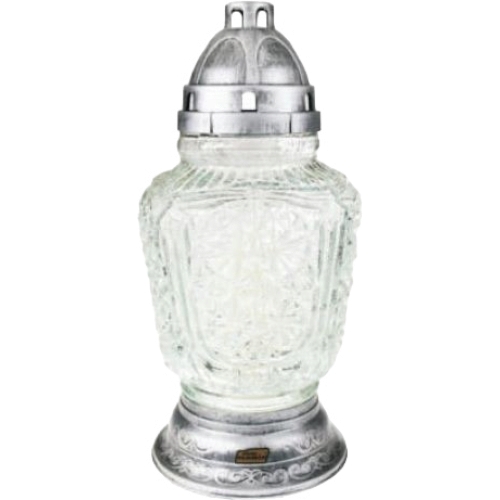 FAROL CRISTAL C/VELA - CERA. PLATA 33CM cantidad