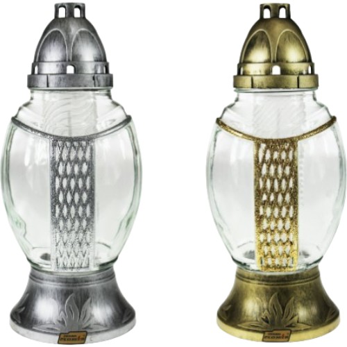 FAROL CRISTAL CON VELA. COLOR ORO/PLATA 30CM cantidad