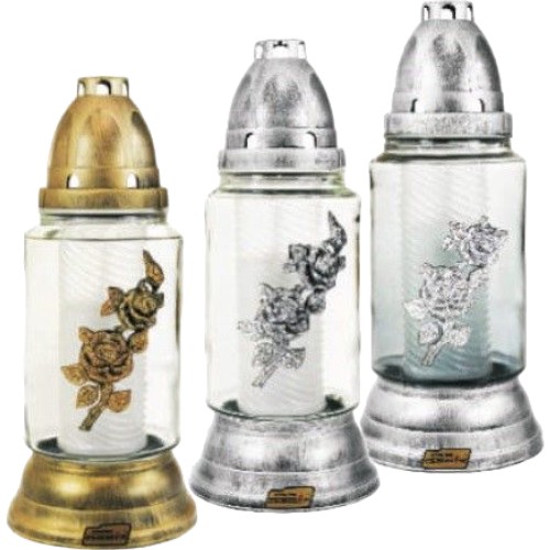 FAROL CRISTAL CON VELA. ORO/PLATA/GRAFITE 25CM cantidad