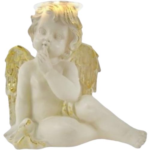 MARFINITE -ÁNGEL SENTADO C/LUZ BLANCO+ORO 12X12X26CM cantidad