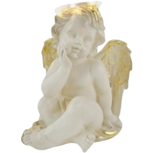 MARFINITE -ÁNGEL SENTADO C/LUZ BLANCO+ORO 12X12X26CM cantidad